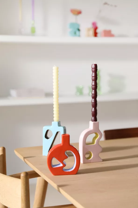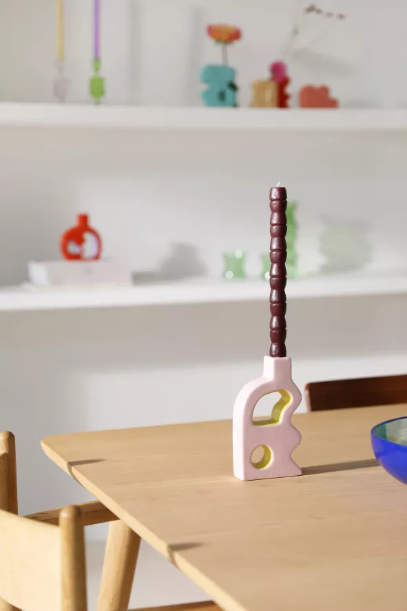 De Flush kandelaar roze van &klevering heeft een lengte van 9,5 centimeter, een breedte van 3,5 centimeter en een hoogte van 17,5 centimeter. De kandelaar is gemaakt van aardewerk en weegt 0,32 kilo. &klevering raadt aan de kandelaar te reinigen met een vochtige doek.