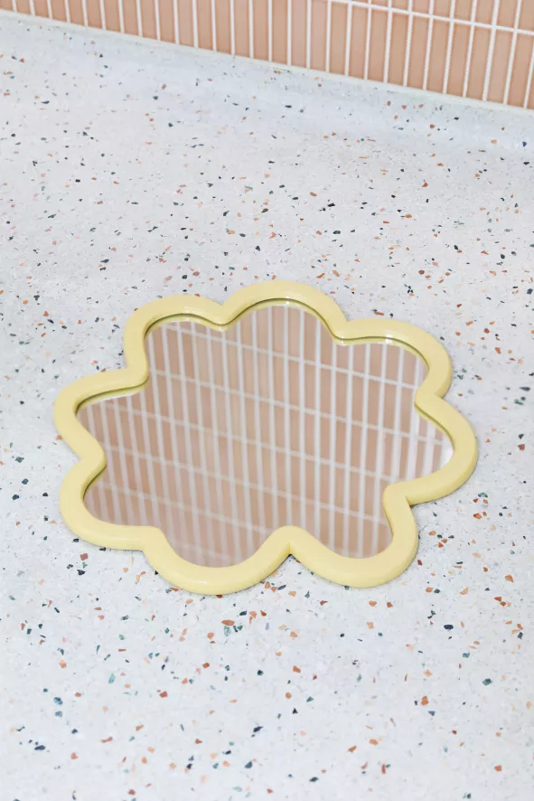 De Funky spiegel Ø44,5 van &klevering heeft een diameter van 44,5 centimeter en een dikte van 1,5 centimeter. De spiegel is gemaakt van glas en de lijst is gemaakt van polyresin in een pastel gele kleur. Maak de spiegel schoon met een vochtige doek.