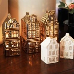 Met deze prachtige theelichthouders grachtenhuisjes uit Stockholm bouw je je eigen stadje. Combineer ze ook met de andere grachtenpandjes uit Amsterdam. Zet een hele rij huisjes op je vensterbank en steek de theelichtjes aan. Zo heb je een heel gezellige verlicht straatje.